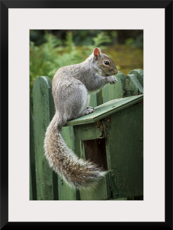<p>A Grey Squirrel photographed at a garden bird feeder in York, North Yorkshire, England, United Kingdom, Europe</p>