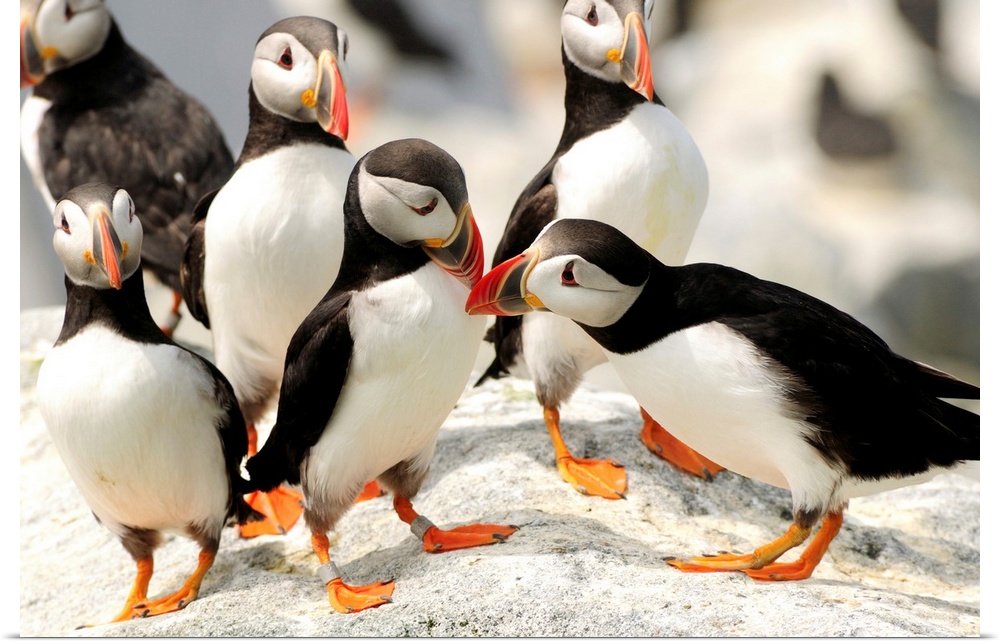 <p>A group of Atlantic puffins on a rock outcropping.</p>
