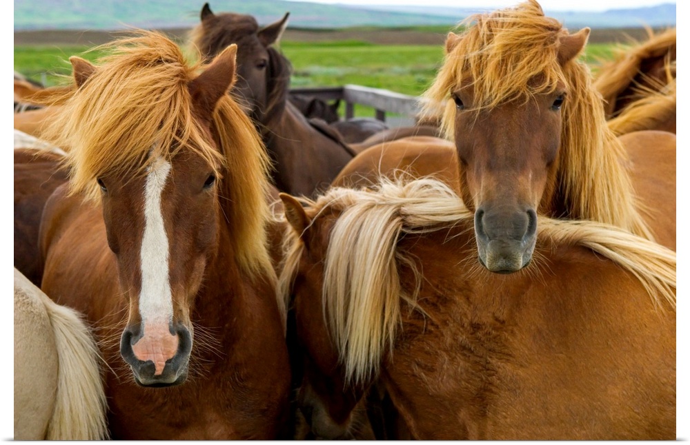 <p>From the National Geographic Collection a close up photograph of shaggy northern climate horses.</p>