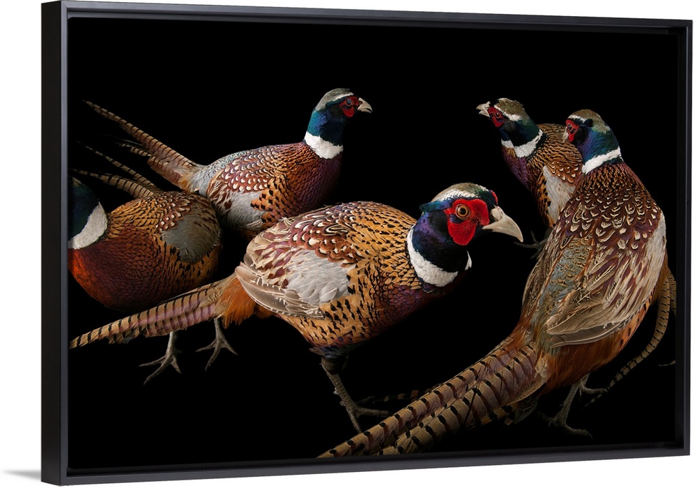 <p>A group of male common pheasants, Phasianus colchicus.</p>