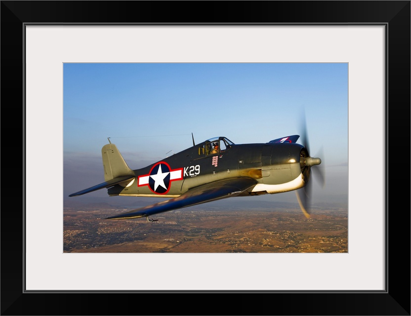 <p>A Grumman F6F Hellcat fighter plane in flight over Chino, California.</p>