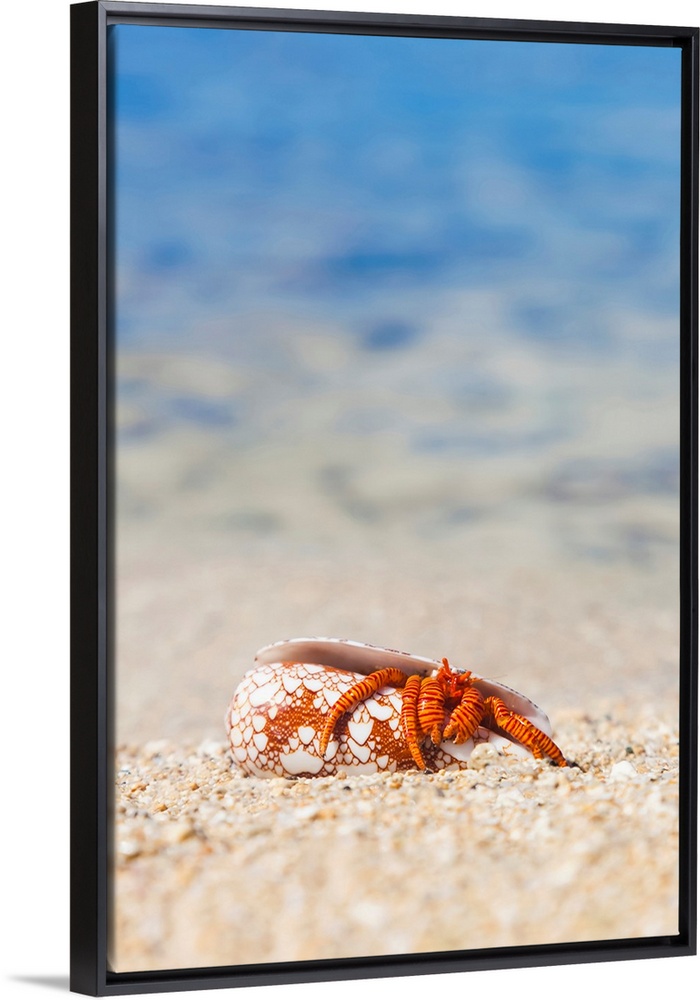 <p>A Hawaiian sea creature, Halloween Hermit Crab (Ciliopagurus strigatus) on the sandy beach; Honolulu, Oahu, Hawaii, United States of America</p>