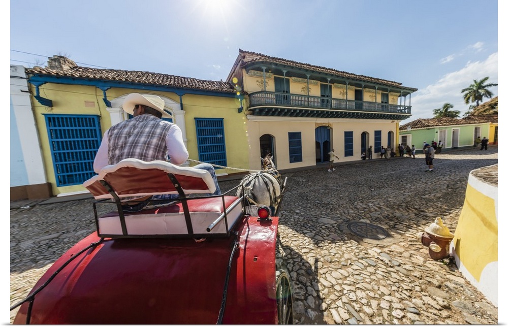 <p>A horse-drawn cart known locally as a coche in Plaza Mayor, Trinidad, Cuba, West Indies, Caribbean</p>