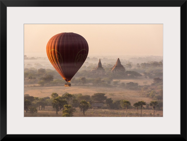<p>A hot-air balloon flying over pagodas in Bagan, Myanmar</p>