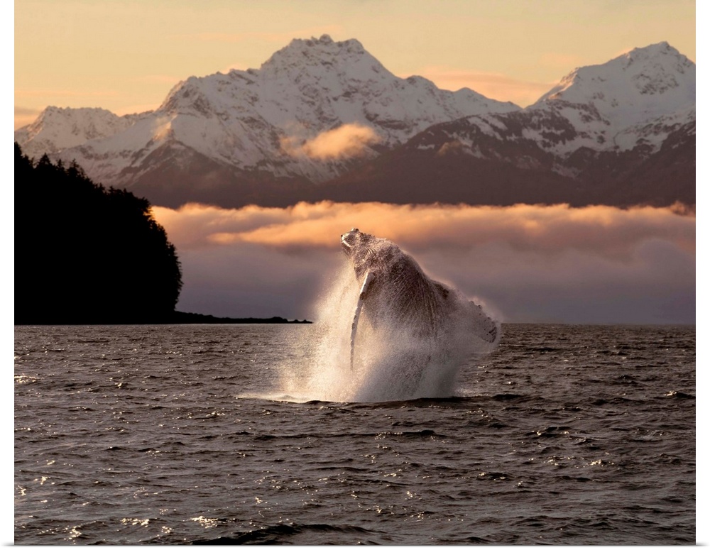 <p>Composite:A Humpback Whale Breaches In Alaska's Inside Passage At Sunrise, Eagle Peak, Admiralty Island Beyond, Southeast, Summer</p>