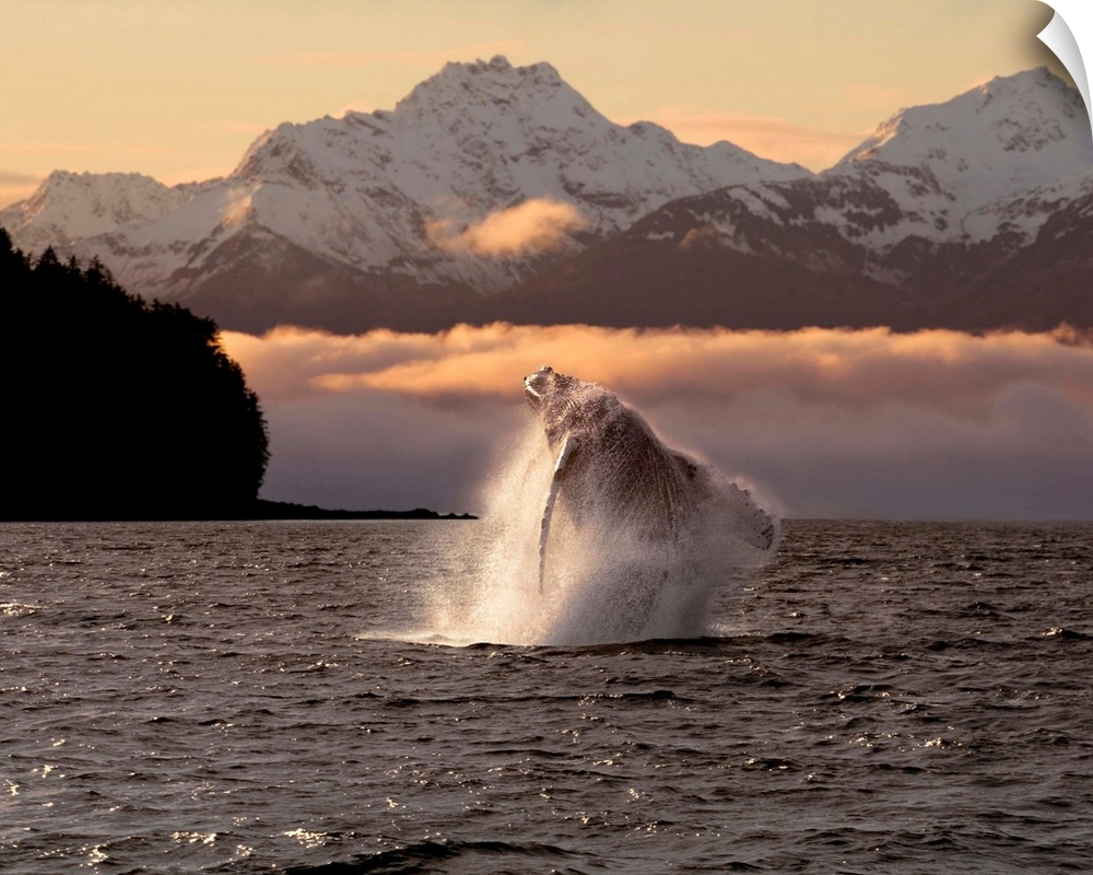 <p>Composite:A Humpback Whale Breaches In Alaska's Inside Passage At Sunrise, Eagle Peak, Admiralty Island Beyond, Southeast, Summer</p>