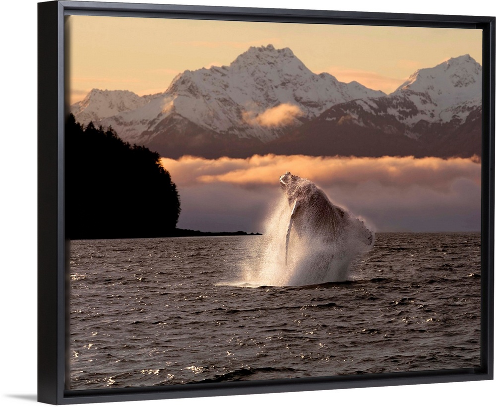 <p>Composite:A Humpback Whale Breaches In Alaska's Inside Passage At Sunrise, Eagle Peak, Admiralty Island Beyond, Southeast, Summer</p>