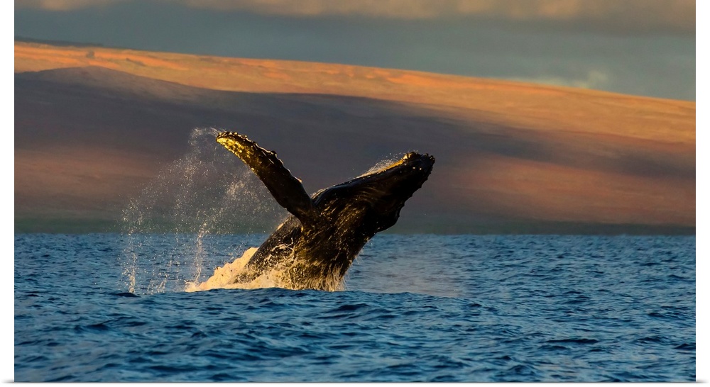 <p>A humpback whale breaches in the Pacific Ocean.</p>