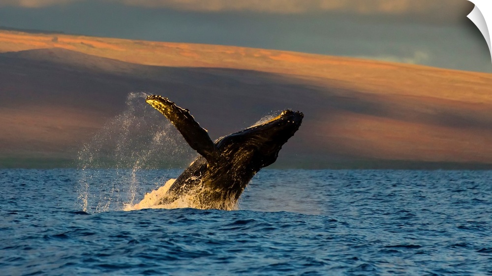 <p>A humpback whale breaches in the Pacific Ocean.</p>