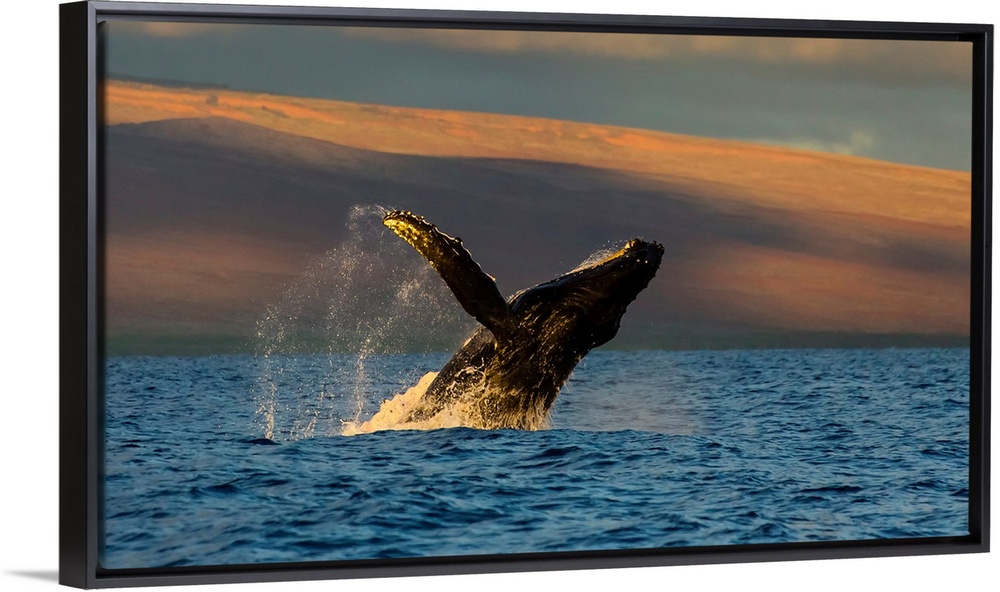 <p>A humpback whale breaches in the Pacific Ocean.</p>