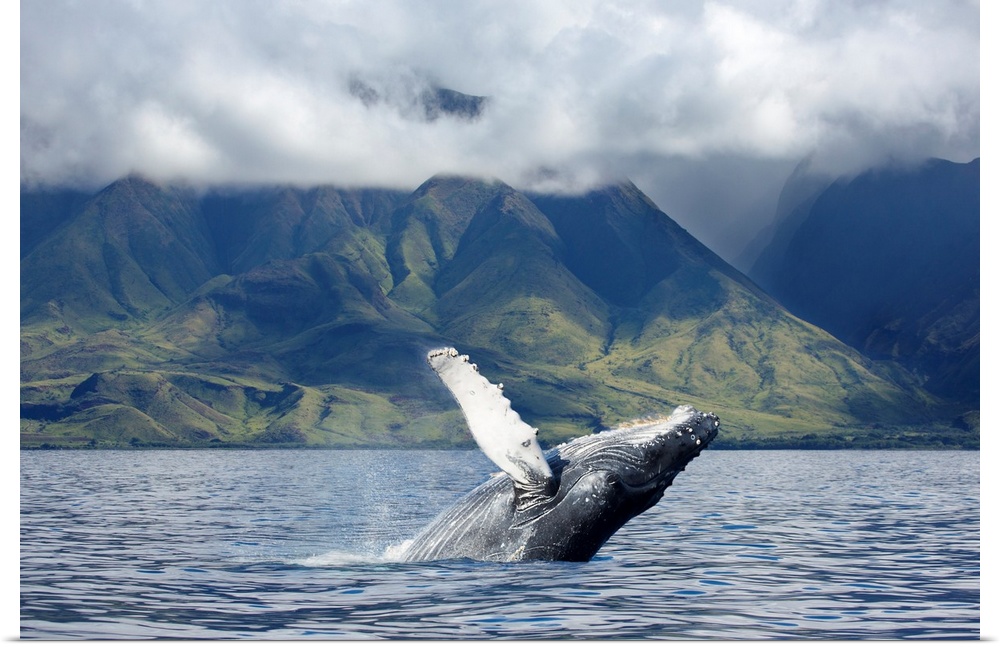 <p>A humpback whale (Megaptera novaeangliae) breaches off the coast of West Maui. Maui, Hawaii, United States of America.</p>