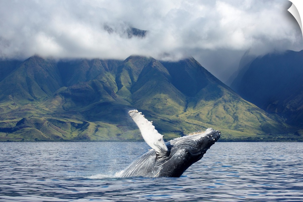 <p>A humpback whale (Megaptera novaeangliae) breaches off the coast of West Maui. Maui, Hawaii, United States of America.</p>