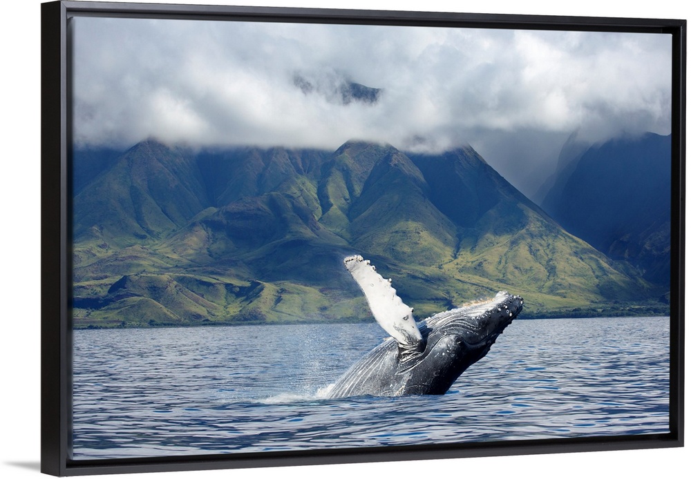 <p>A humpback whale (Megaptera novaeangliae) breaches off the coast of West Maui. Maui, Hawaii, United States of America.</p>