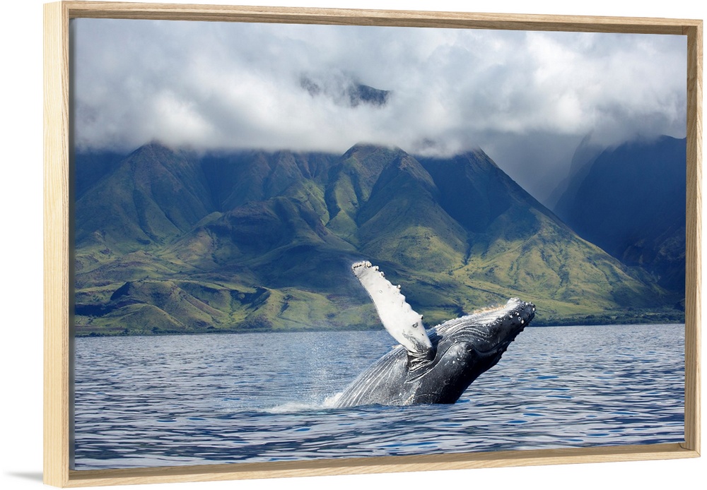 <p>A humpback whale (Megaptera novaeangliae) breaches off the coast of West Maui. Maui, Hawaii, United States of America.</p>