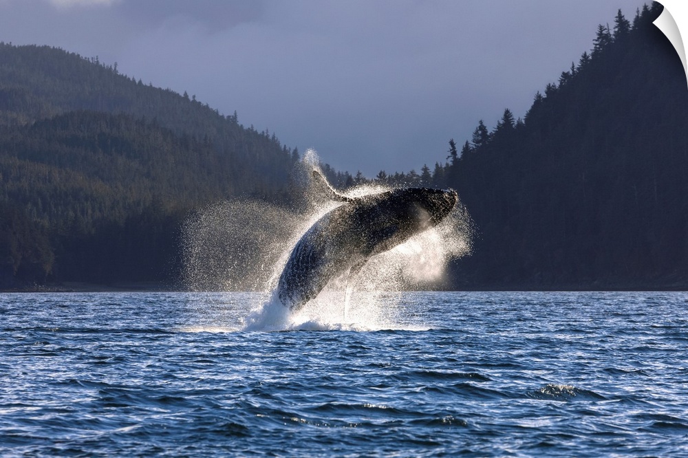 <p>A Humpback Whale leaps from the waters of the Inside Passage near Juneau, Alaska. Favorite Passage, Shelter Island.</p>