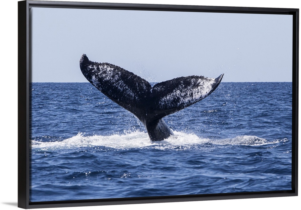 <p>A humpback whale raises its powerful tail as it dives into the Caribbean Sea.</p>