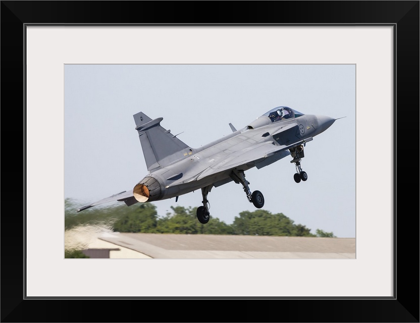 <p>A JAS-39 Gripen of the Swedish Air Force taking off.</p>