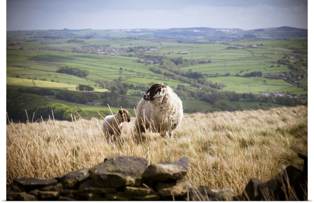 <p>A lamb with mother on a hill top in the Peak District.</p>