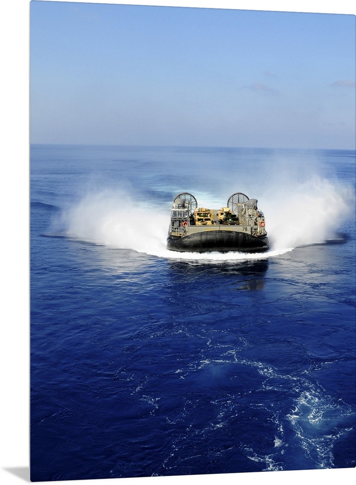 <p>A landing craft air cushion in the Mediterranean Sea.</p>