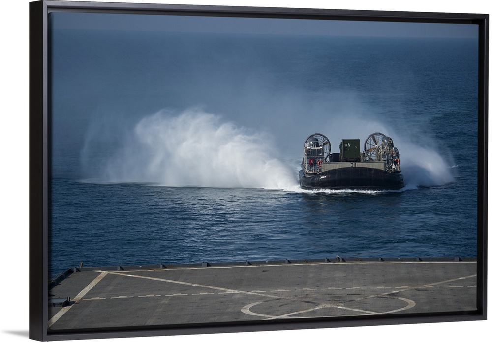 <p>Arabian Gulf, December 10, 2014 - A Landing Craft Air Cushion makes its approach to the well deck of the amphibious dock landing ship USS Comstock (LSD 45) during exercise Red Reef 15.</p>