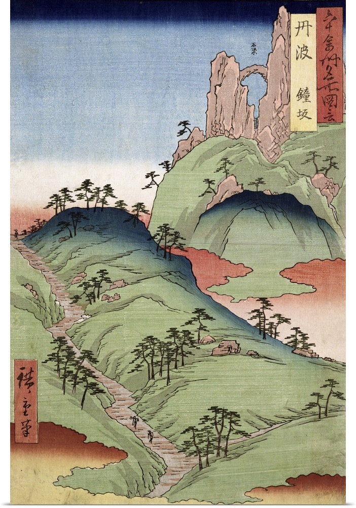 <p>BAL21286 A landscape and seascape, two views from the series '60-Odd Famous Views of the Provinces', pub. by Kosheihei, 1853, (colour woodblock print) by Hiroshige, Ando or Utagawa (1797-1858); Private Collection; Japanese, out of copyright</p>