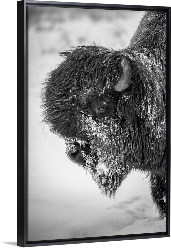 <p>A large, snowy bull wood bison (bison bison athabascae), Alaska wildlife conservation center, portage, Alaska, united states of America.</p>