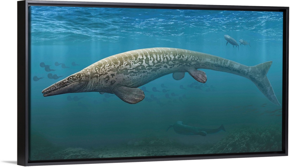 <p>A large Tylosaurus aquatic reptile searches the Cretaceous waters for food.</p>