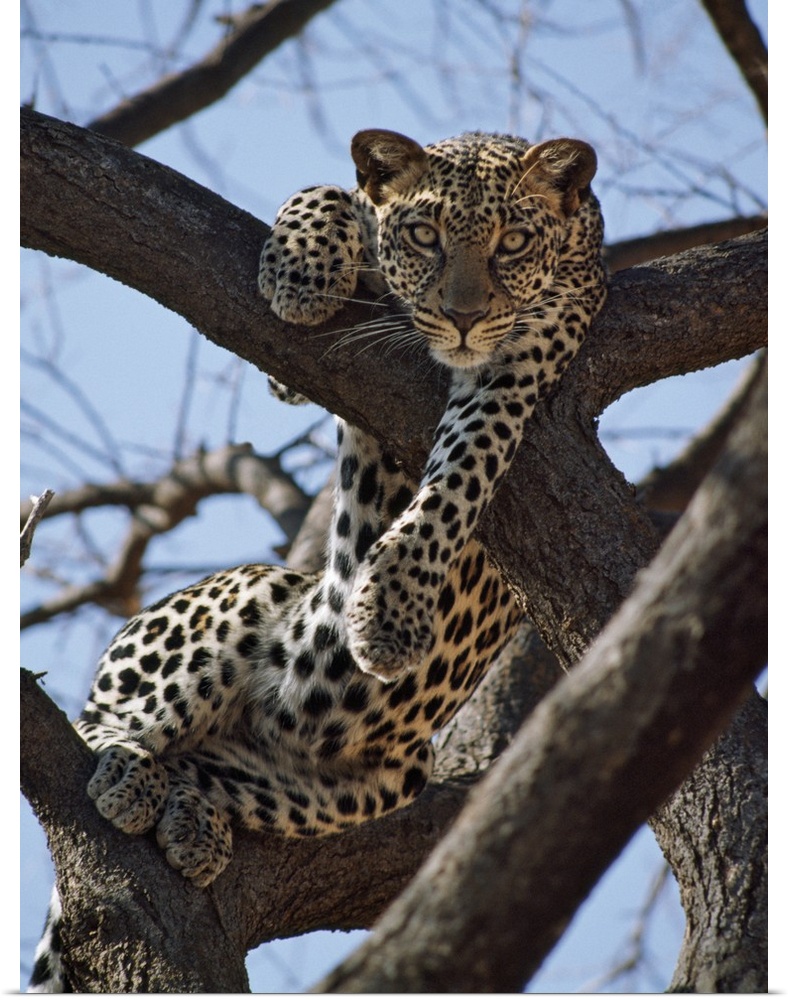 <p>A leopard gazes intently from a comfortable perch in a tree in Samburu National Reserve.</p>
