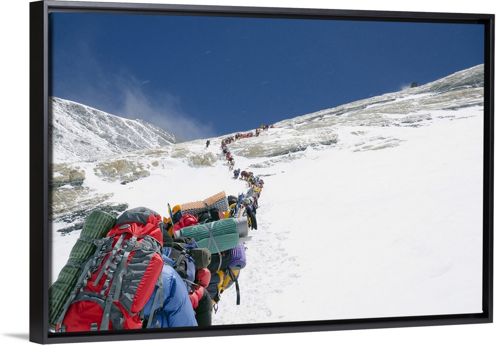 <p>A line of climbers on the Lhotse Face, Mount Everest, Solu Khumbu Everest Region, Sagarmatha National Park, UNESCO World Heritage Site, Nepal, Himalayas, Asia</p>