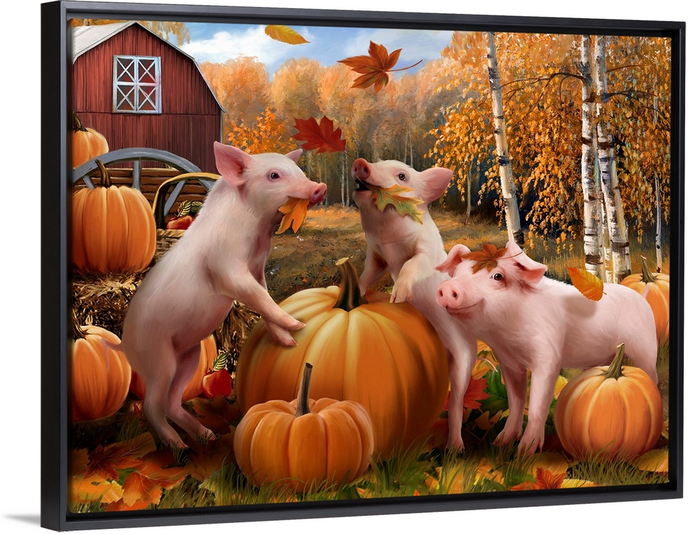 Art Four Seasons Fall Wildlife Pig Tom Wood