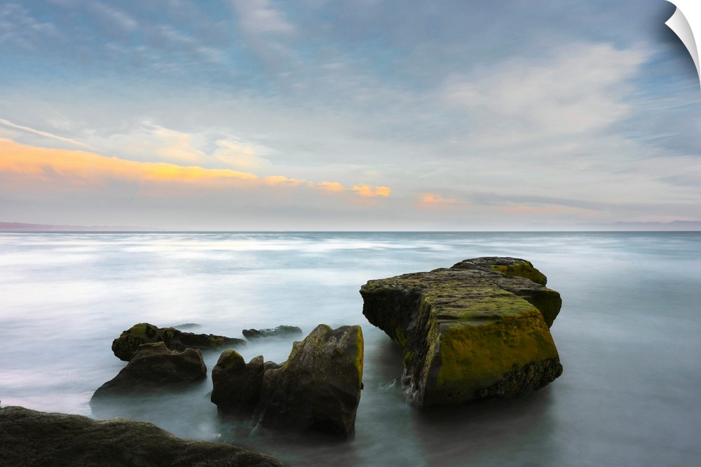 <p>A long exposure seascape made along a rocky beach in Santa Cruz, California, United States of America</p>
