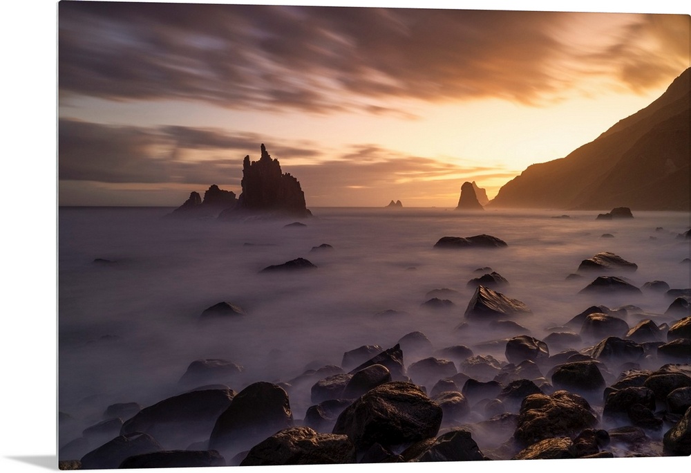 <p>A long exposure to capture the sunrise at Benijo Beach, Tenerife, Canary Islands, Spain, Atlantic, Europe</p>