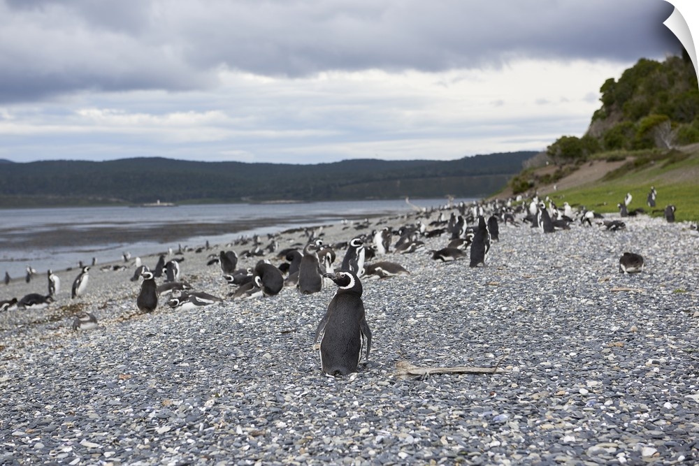 <p>A magellanic penguin colony at the beach on Martillo Island, Tierra del Fuego, Argentina, South America</p>