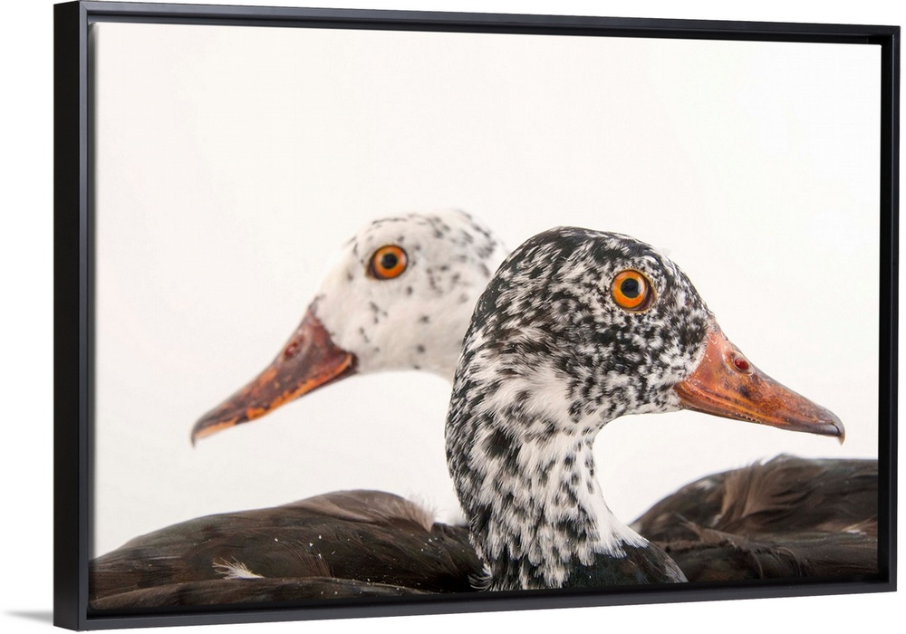 <p>A male and female white-winged duck, Asarcornis scutulata, at Sylvan Heights Bird Park.</p>