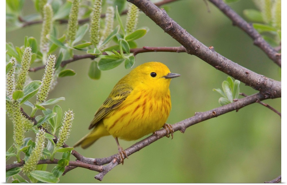 <p>Yellow Warbler (Dendroica petechia), male, perched in willow, Copper River Delta, near Cordova, Alaska, southcentral, spring</p>