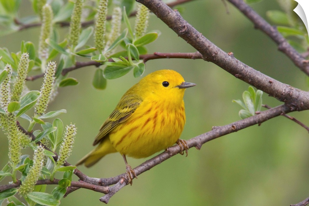 <p>Yellow Warbler (Dendroica petechia), male, perched in willow, Copper River Delta, near Cordova, Alaska, southcentral, spring</p>