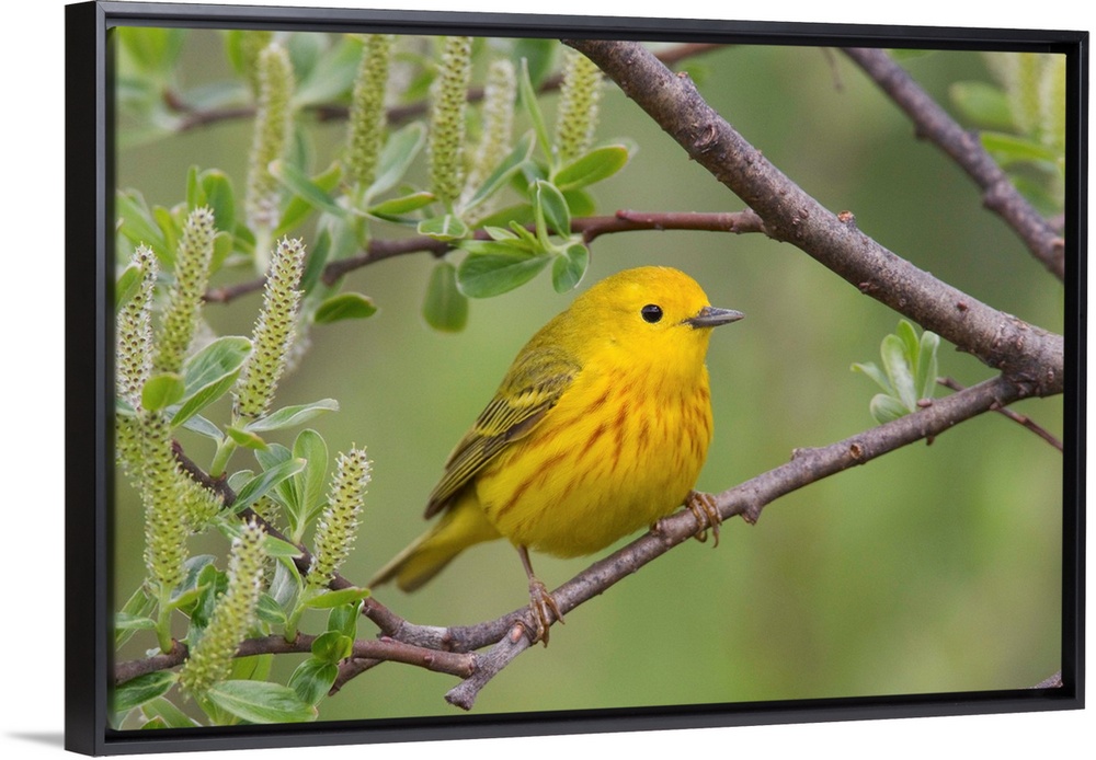 <p>Yellow Warbler (Dendroica petechia), male, perched in willow, Copper River Delta, near Cordova, Alaska, southcentral, spring</p>