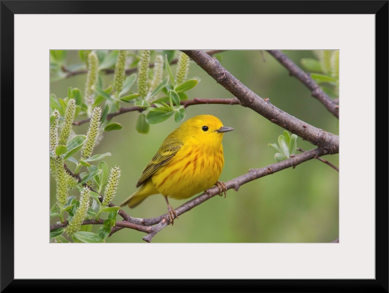 <p>Yellow Warbler (Dendroica petechia), male, perched in willow, Copper River Delta, near Cordova, Alaska, southcentral, spring</p>