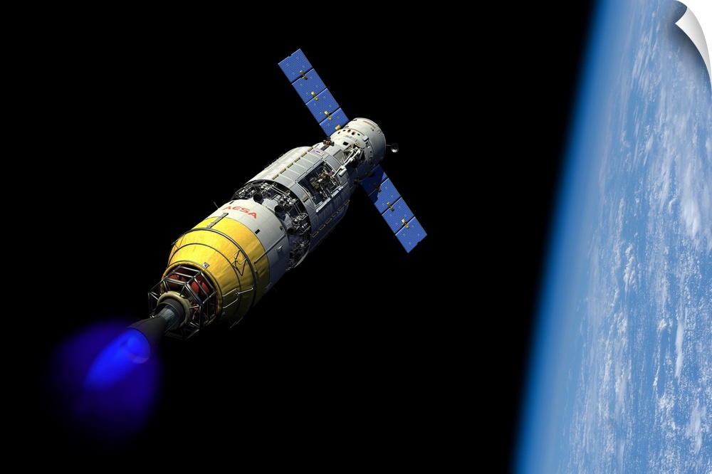 <p>A manned orbital maintenance platform docked with a manned reusable crew capsule.</p>