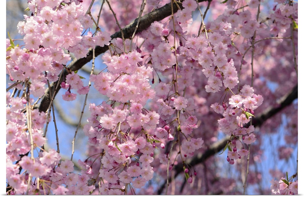 <p>A massive floral display in a weeping higan cherry tree, in spring. Cambridge, Massachusetts.</p>