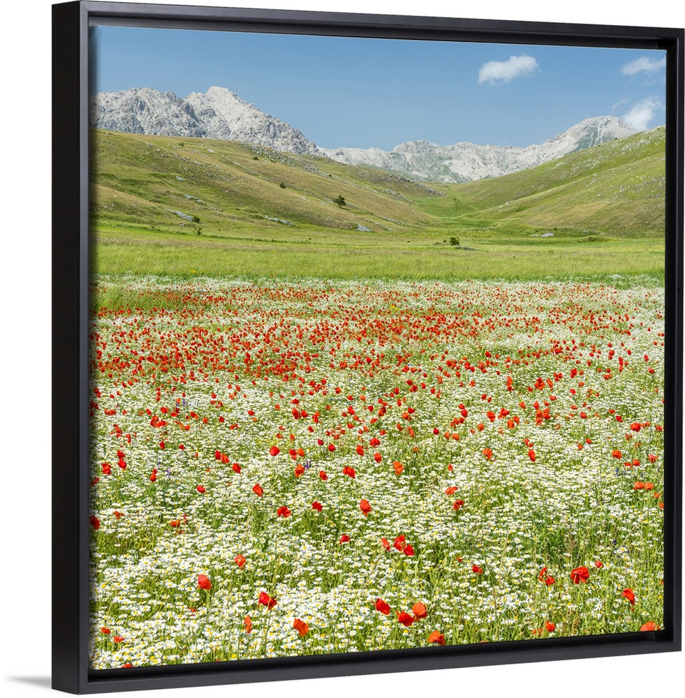 <p>A meadow with wildflowers in the National Park of Gran Sasso, the Abruzzi, Italy</p>