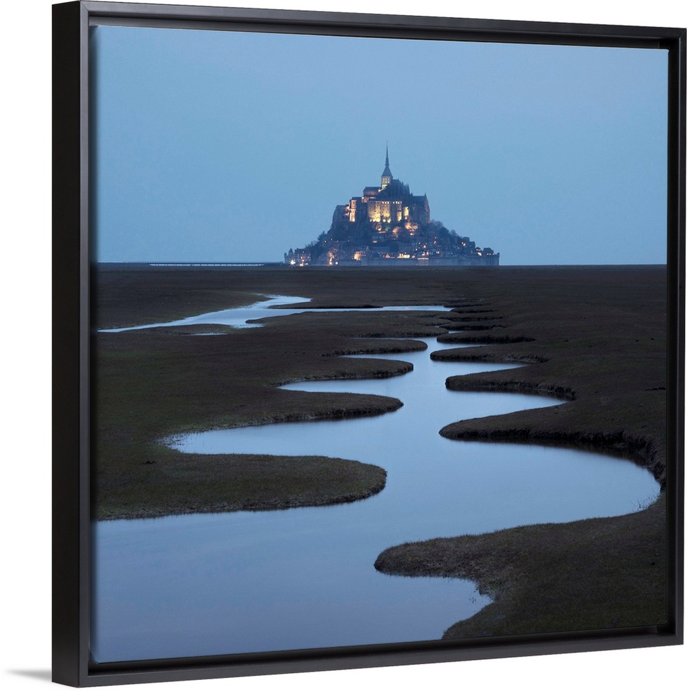 <p>A Meandering Pool And Mont Saint Michel At Night, Manche, Normandy, France</p>