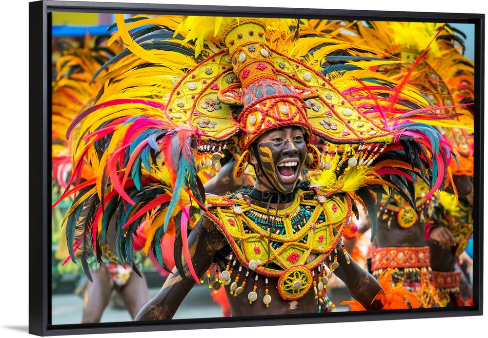 <p>A member of Tribu Panayanon of Iloilo City National High School, Molo, Iloilo City reacts during the 2015 Dinagyang Festival, Iloilo City, Western Visayas, Philippines.</p>