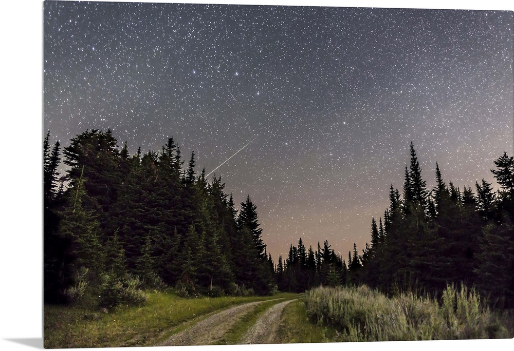 <p>July 28, 2014 - The Big Dipper and Ursa Major at the end of the backroad on the summit of Mount Kobau, near Osoyoos, British Columbia. A meteor streaks down at left.</p>
