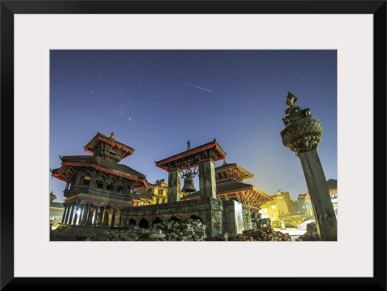 <p>Above lights of the Bhaktapur Durbar Square of Nepal, a meteor streaks the sky next to the stars of Orion during the peak of Geminid Meteor shower. Geminids is so bright and active you can observe in the cities. Bhaktapur Durbar Square is the plaza in front of the royal palace of the old Bhaktapur Kingdom, It is one of three Durbar Squares in the Kathmandu Valley in Nepal, all of which are UNESCO World Heritage Sites.</p>