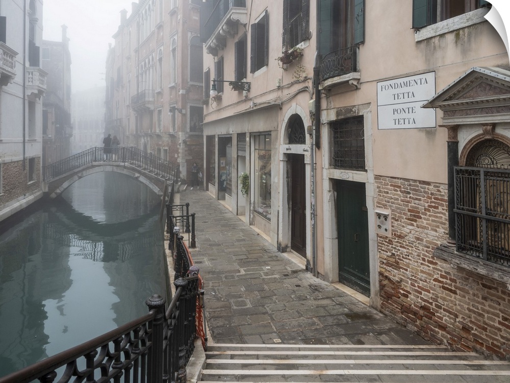 <p>A misty winter morning by the canal, Fondamenta Tetta, Castello, Venice, UNESCO World Heritage Site, Veneto, Italy, Europe</p>