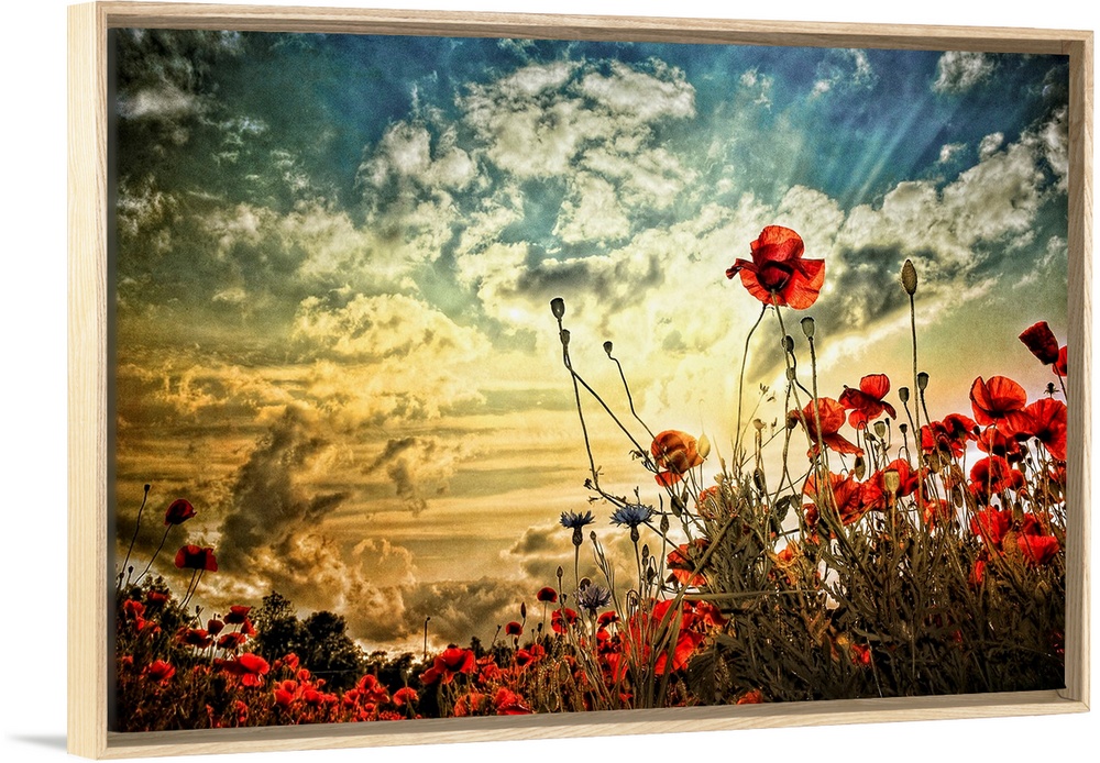 <p>Photograph of a poppy field under a cloudy sky.</p>