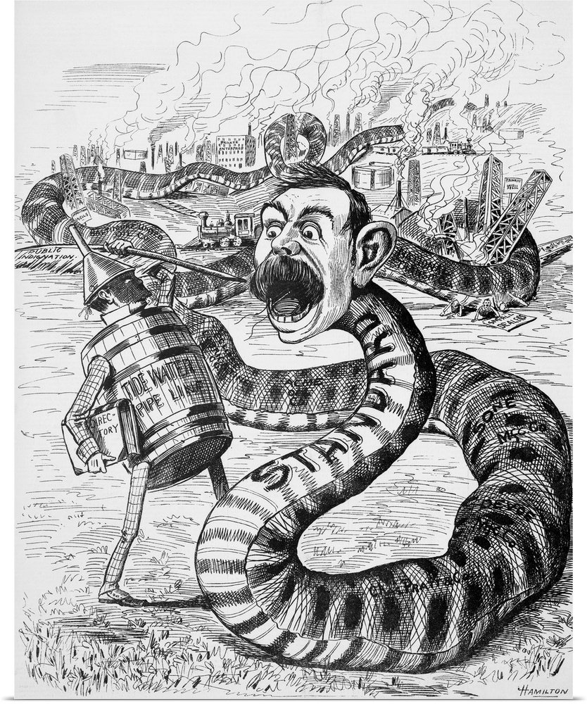 <p>Political Cartoon of Tidewater Pipe Line fighting with Standard Oil.</p>