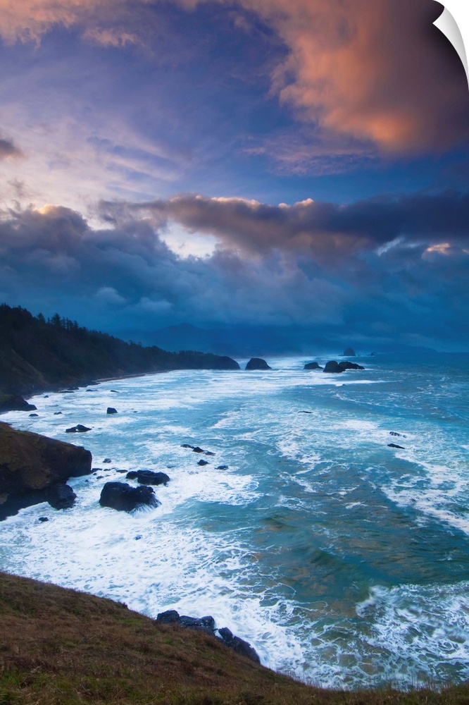 <p>A morning storm brews on the pacific coast in this view from Ecola State Park, near Cannon Beach. Oregon, United States of America.</p>