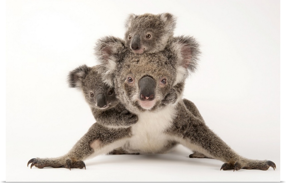 <p>Augustine, a mother koala with her young ones Gus and Rupert (one is adopted and one is her own offspring) at the Australia Zoo Wildlife Hospital.</p>